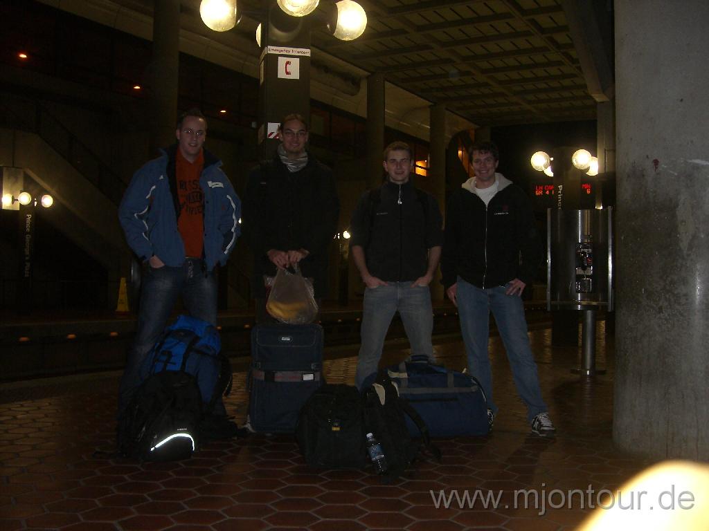Das obligatorische Bild beim Start der Reise: mit Selbstauslöser im Metro-Haltepunkt Prince George's Plaza in Hyattsville. v.r.n.l. Andreas, Steffen, Patrick und ich. | ![]() |