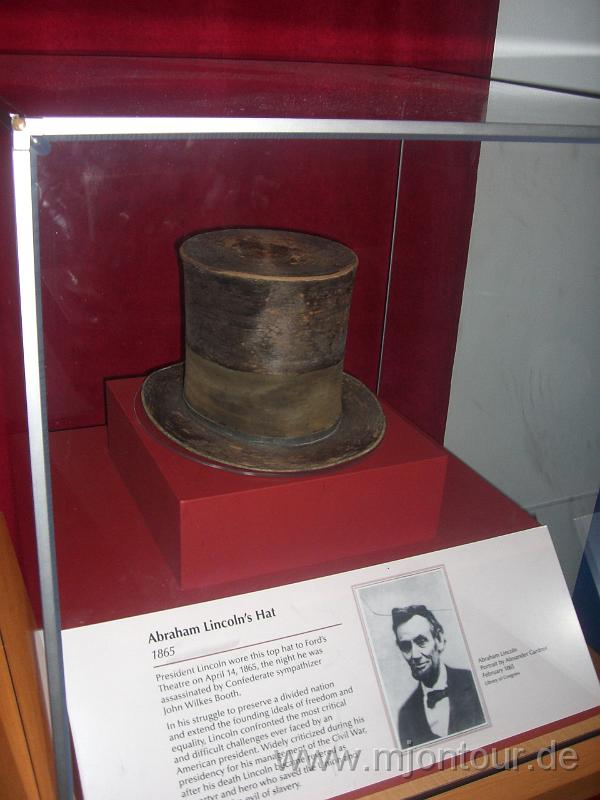 Hut von Abraham Lincoln, den er beim Besuch im Theater auf hatte, als er erschossen wurde | ![]() |